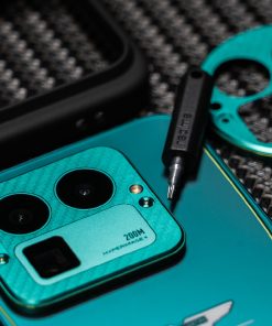 Hộp sản phẩm cũng được thiết kế riêng theo phong cách phiên bản sưu tầm, bao gồm nhiều phụ kiện theo chủ đề F1. Bên trong, người dùng sẽ nhận được hai khung viền camera có hoạ tiết giả sợi carbon, hai ốp lưng, que chọc SIM được thiết kế riêng và củ sạc.